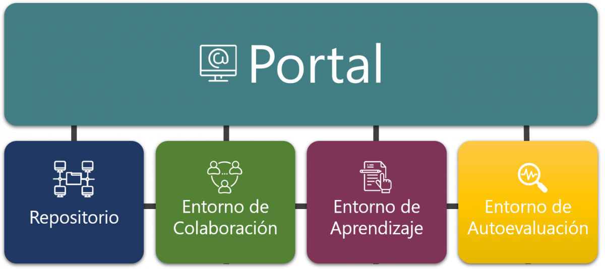 Entorno de aprendizaje: Este entorno virtual tiene la función de gestionar el aprendizaje. Basado en la plataforma Moodle, puede ser utilizado para el aprendizaje autogestivo a través de cursos en línea.